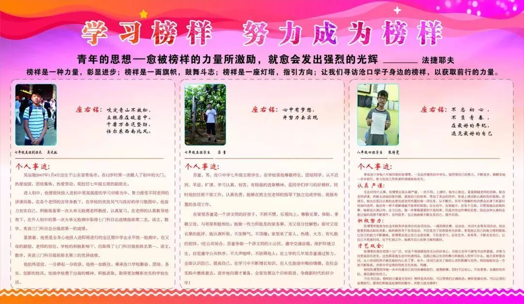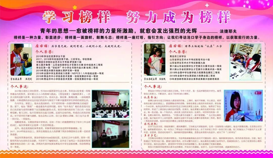 榜样的力量是无穷的,在团委步书记的倡议下,同学们积极寻找身边榜样,学习其先进行为,争当校园小英模。