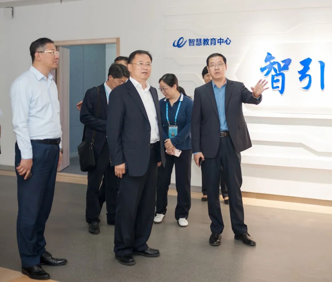 在西海岸新区教体局智慧教育指导中心,刘鹏照详细了解新区智慧教育开展情况,现场观看智慧课堂、智慧评价演示,了解人工智能领域在课堂和课程方面的具体应用。