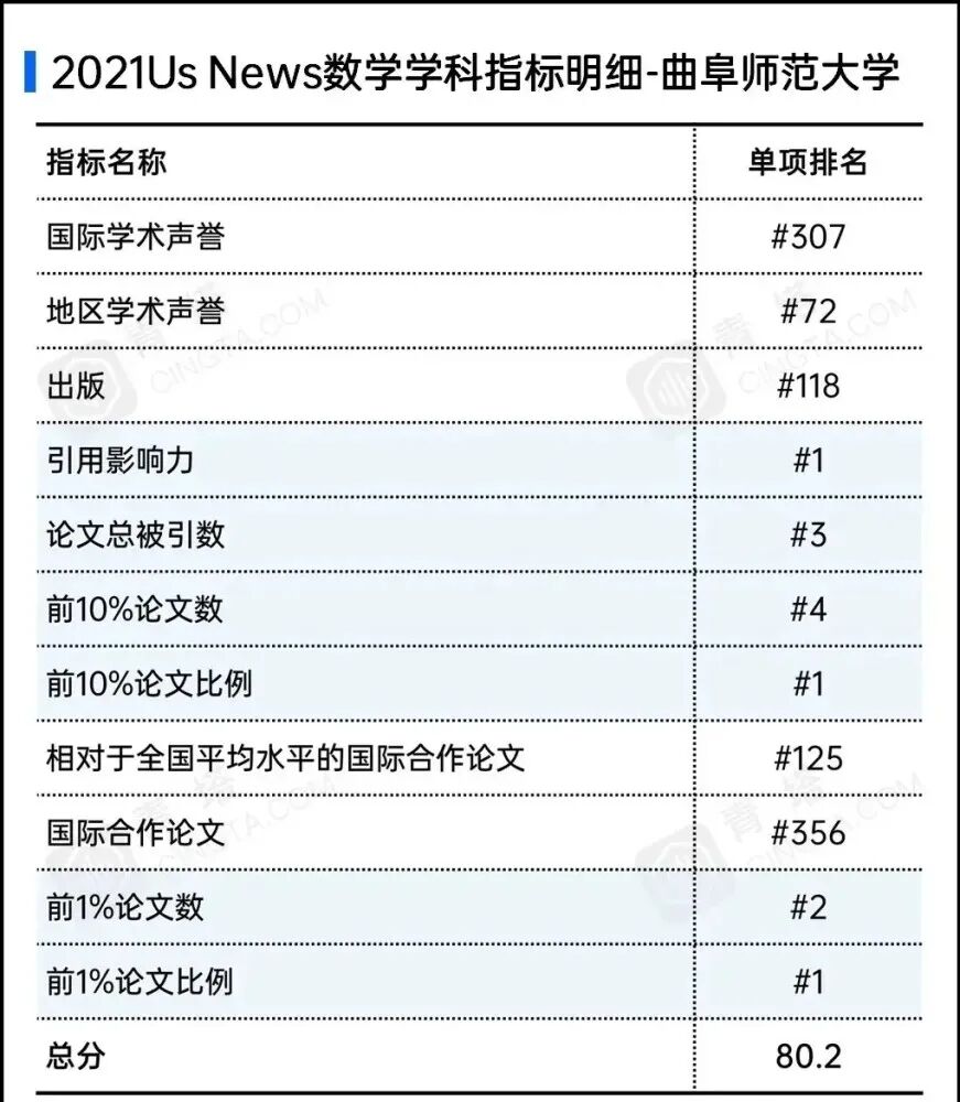 2021U.S.News数学学科指标明细-曲阜师范大学