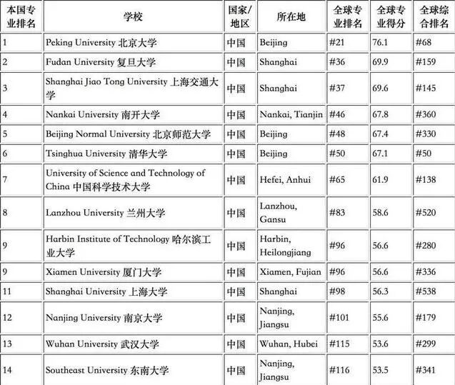 2019年U.S.News中国大学数学专业排名