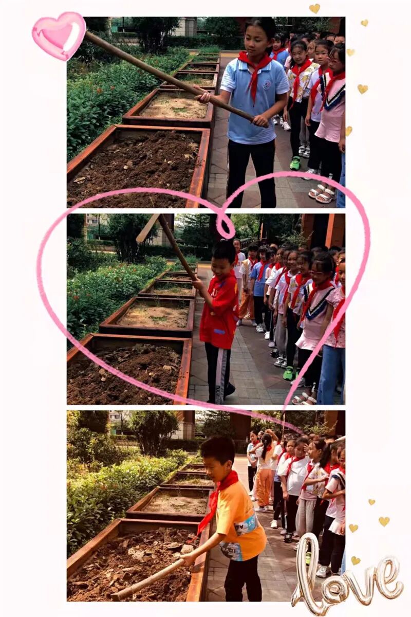 瞧,队员们在自己“生长责任田”里忙着耕种,在家长志愿者、中队辅导员的指导下,除草、刨松土壤、播撒种子、覆盖营养土、浇水……每一个种菜步骤,队员们都做得一丝不苟!